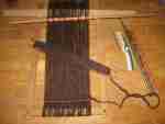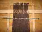 I made a frame loom out of scraps from a broken clothes drying rack. A paint stirring stick made an excellent shed stick, and the shuttles are made from an old yardstick. I found a good reference for using a simple loom, if you’d like to make one.