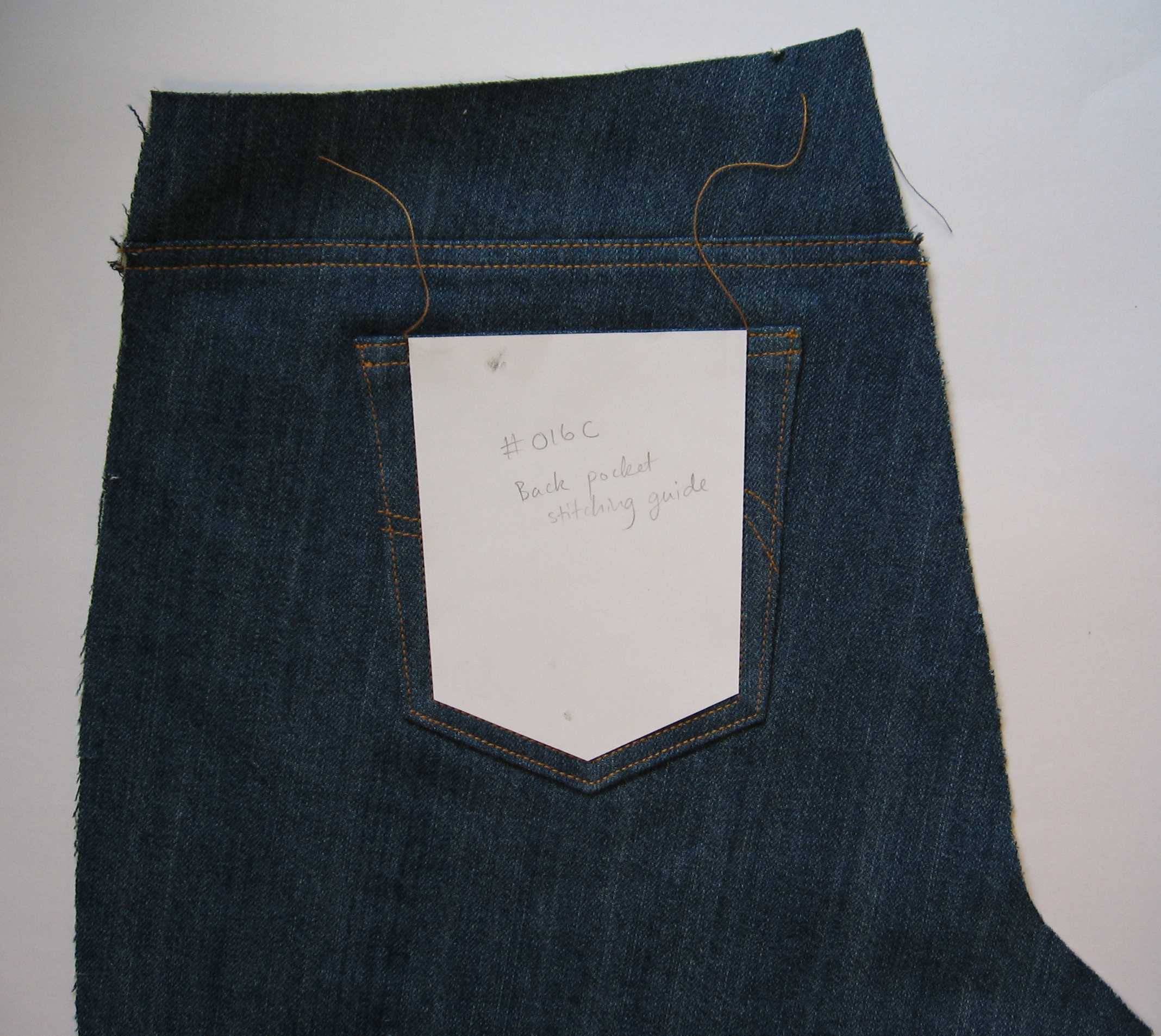 11. Use a heavy paper guide, held in place with double-sided tape, for the inner row of stitching. I used a 1/4″ presser foot as a guide on the bottom, since the template never quite lines up perfectly.
