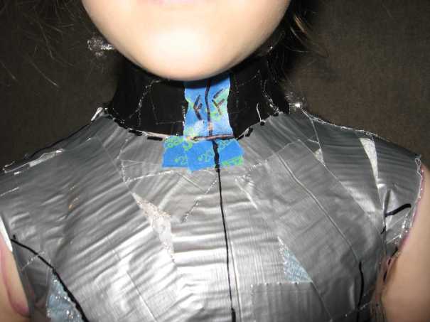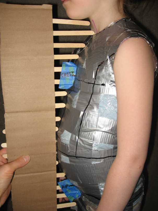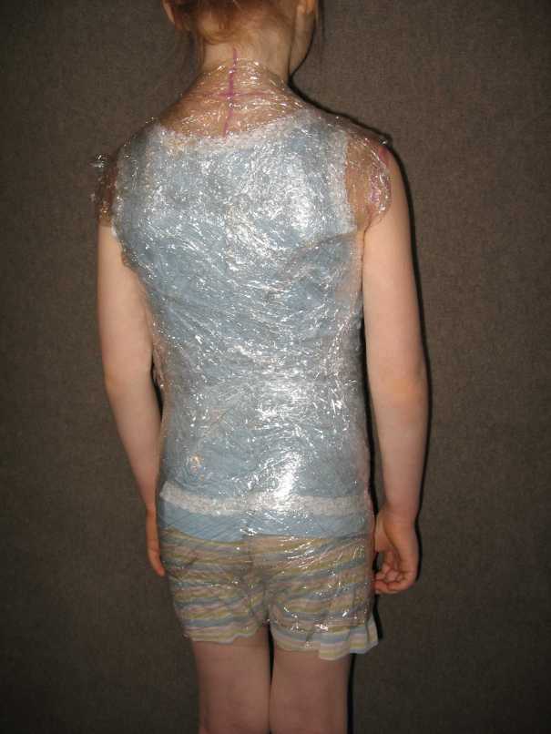 I was fully prepared to bribe my daughter to let me wrap her in plastic wrap and tape to make a pattern, but I figured I’d just ask first and see what she said. She said “OK,” just like that. Wow, what a kid. She thinks it’s totally normal for Mom to wrap her up in tape, poor thing.
