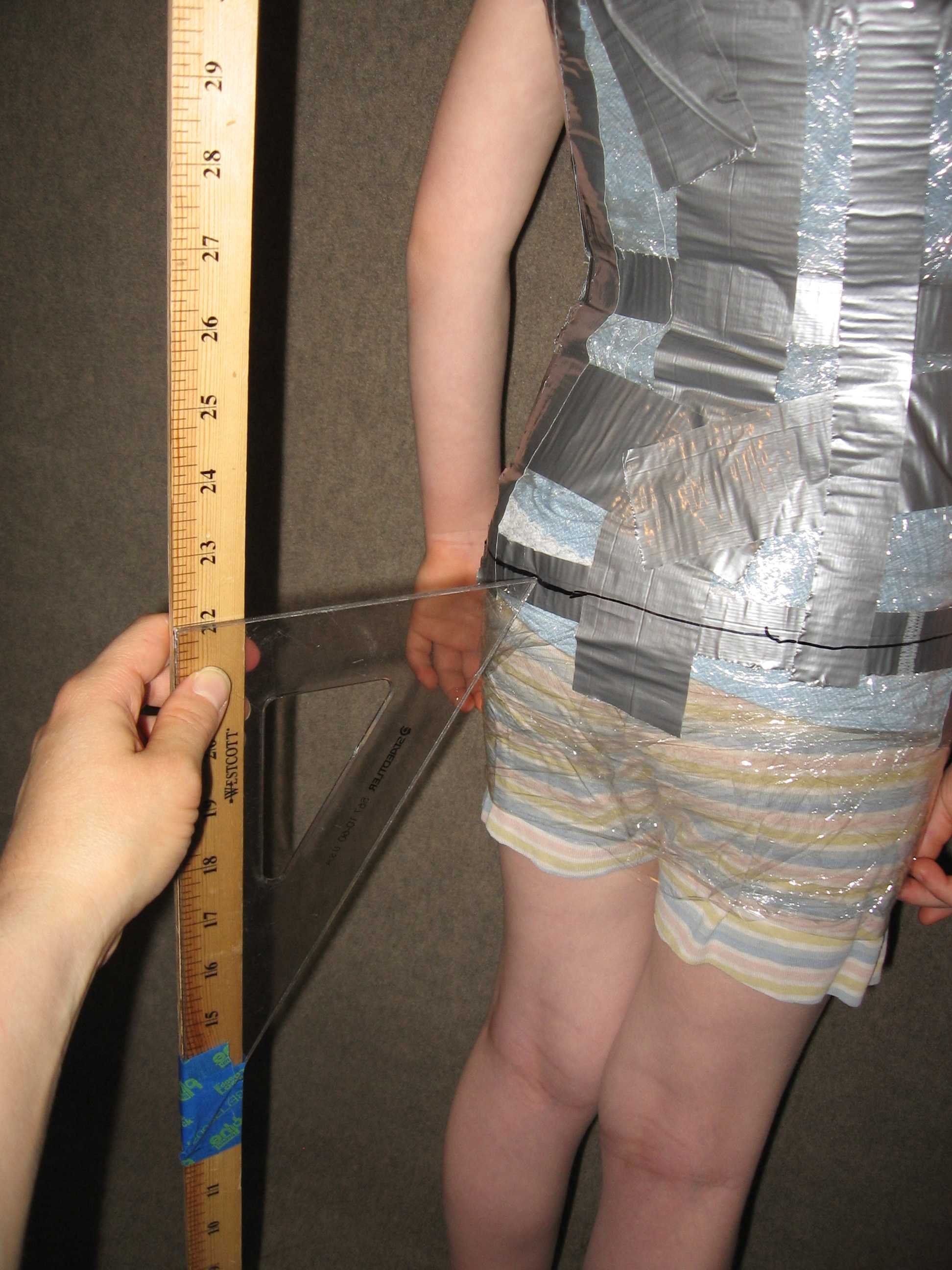 I also used paper tape to capture the cross section shape at the lower edge of the form 3 inches below the hips.