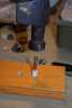 The sprocket has to fit tightly. I drilled a hole in a scrap of wood to fit the stud, then tapped the stud through it.