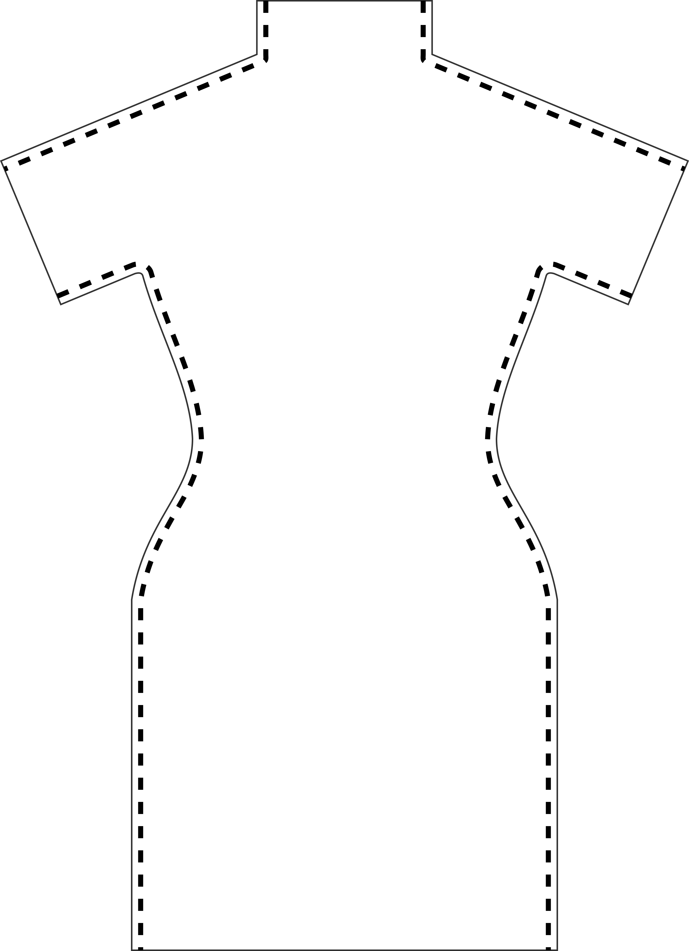 Mark “cut on fold” on the center front/center back line, and cut out the pattern. 1 cm (3/8″) seam allowances are already included on the pattern, so you don’t need to add seam allowances. Cut 2 on fold, with the direction of greatest stretch of the fabric going around the body.